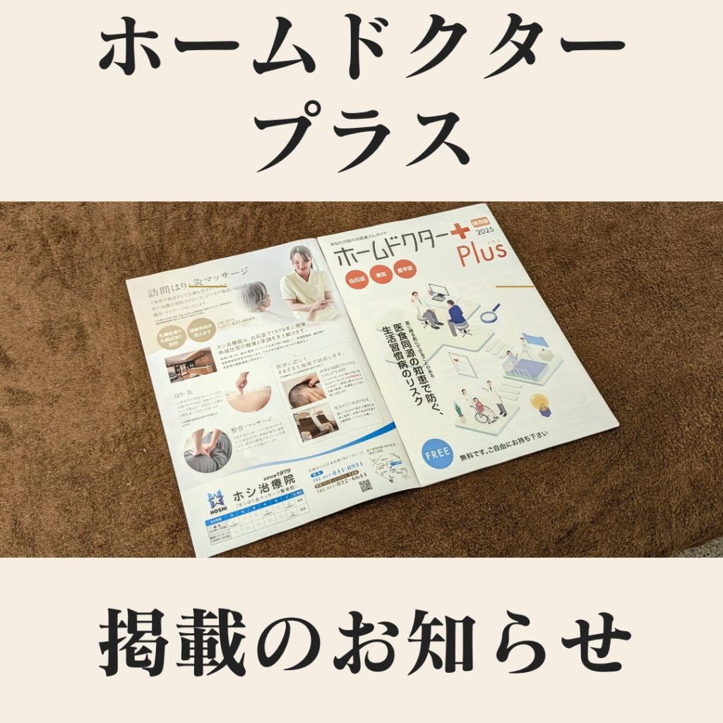 このたび、ホシ治療院が【ホームドクターPlus 2025 保存版】に掲載されました。