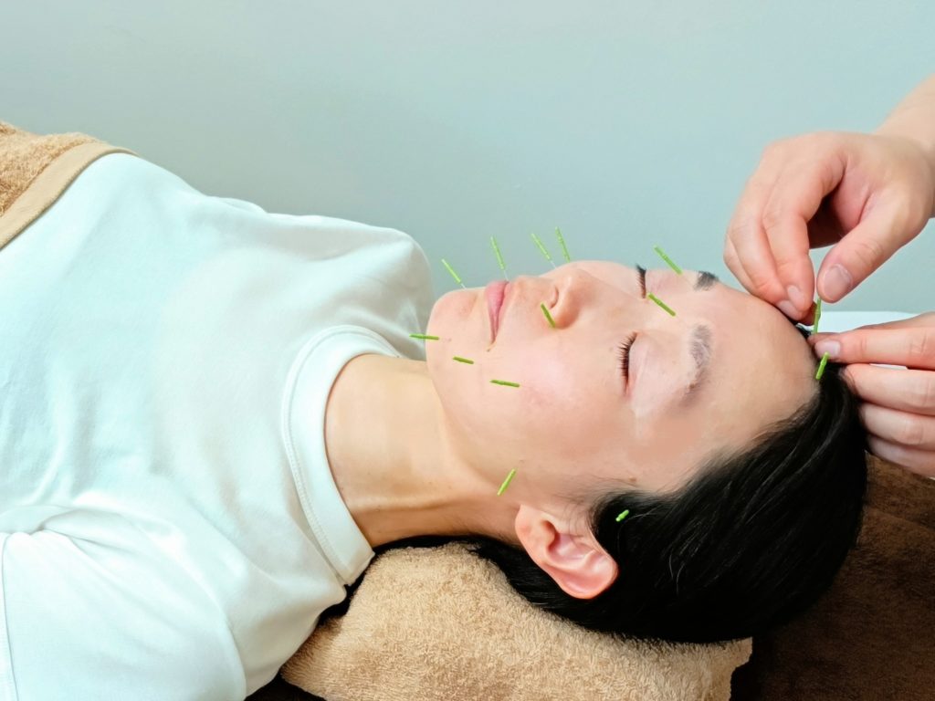 顔に細い鍼(使い捨てディスポ鍼)を刺すことで、筋緊張をやわらげ血行を促進し、コラーゲンやエラスチンの生成を促す鍼治療です。 同時に「表在筋膜のタッピング」とマッサージを行い、筋膜を整えます。 定期的に受けることでより持続的な効果が得られます。 美容鍼のみの場合、メイクしたままの施術可能です。男性にもおすすめです。