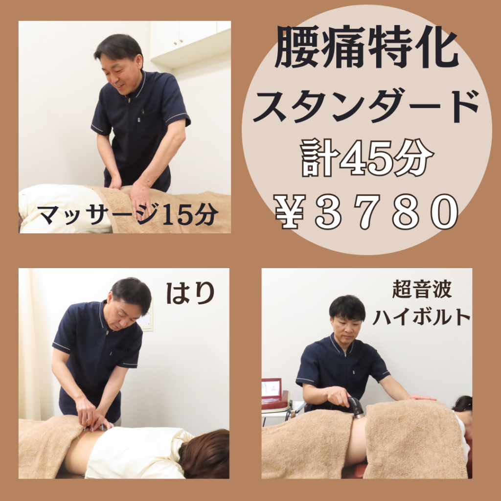 慢性や疲労性の腰痛や肩こりには、特化マッサージや鍼を行います。